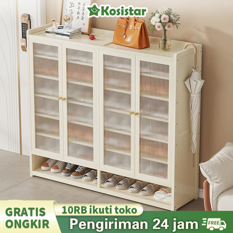 Kosistar-Rak Sepatu Putih Lemari Sepatu Tertutup Rak Sepatu Minimalis Rak sepatu Susun Esthetic 60 Pcs Sepatu