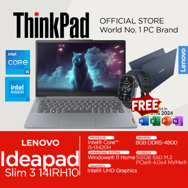 Lenovo IdeaPad Slim 3 Core i5 13420H 8GB RAM 512GB SSD Windows 11 OHS 2021 14 Inch FHD IPS 14IRH10