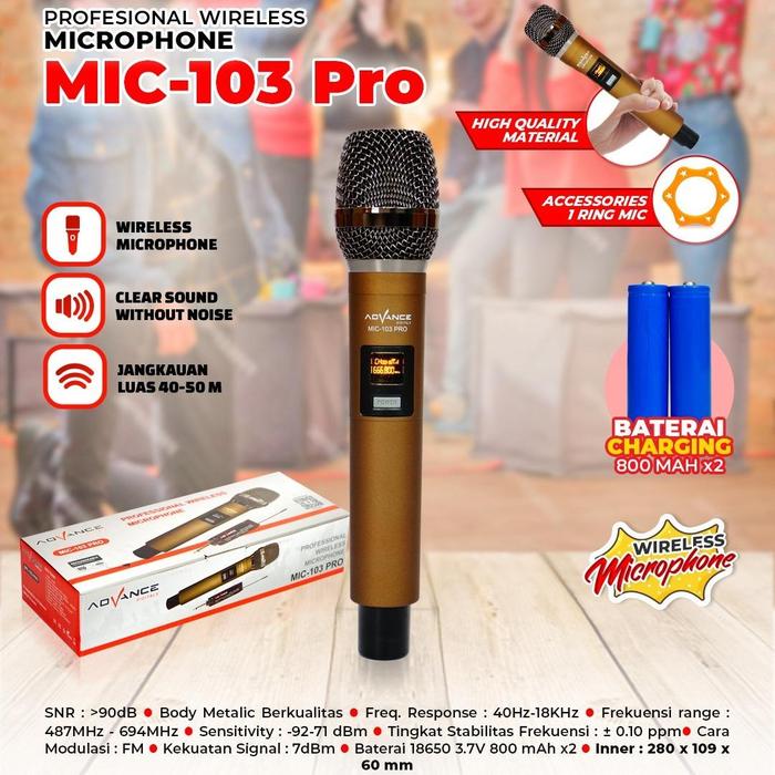 【】ADVANCE MIC-103 PRO MICROPHONE WIRELESS SINGLE RECHARGER GARANSI RESMI 1 TAHUN LED MIKROFON - MIC 103 PRO