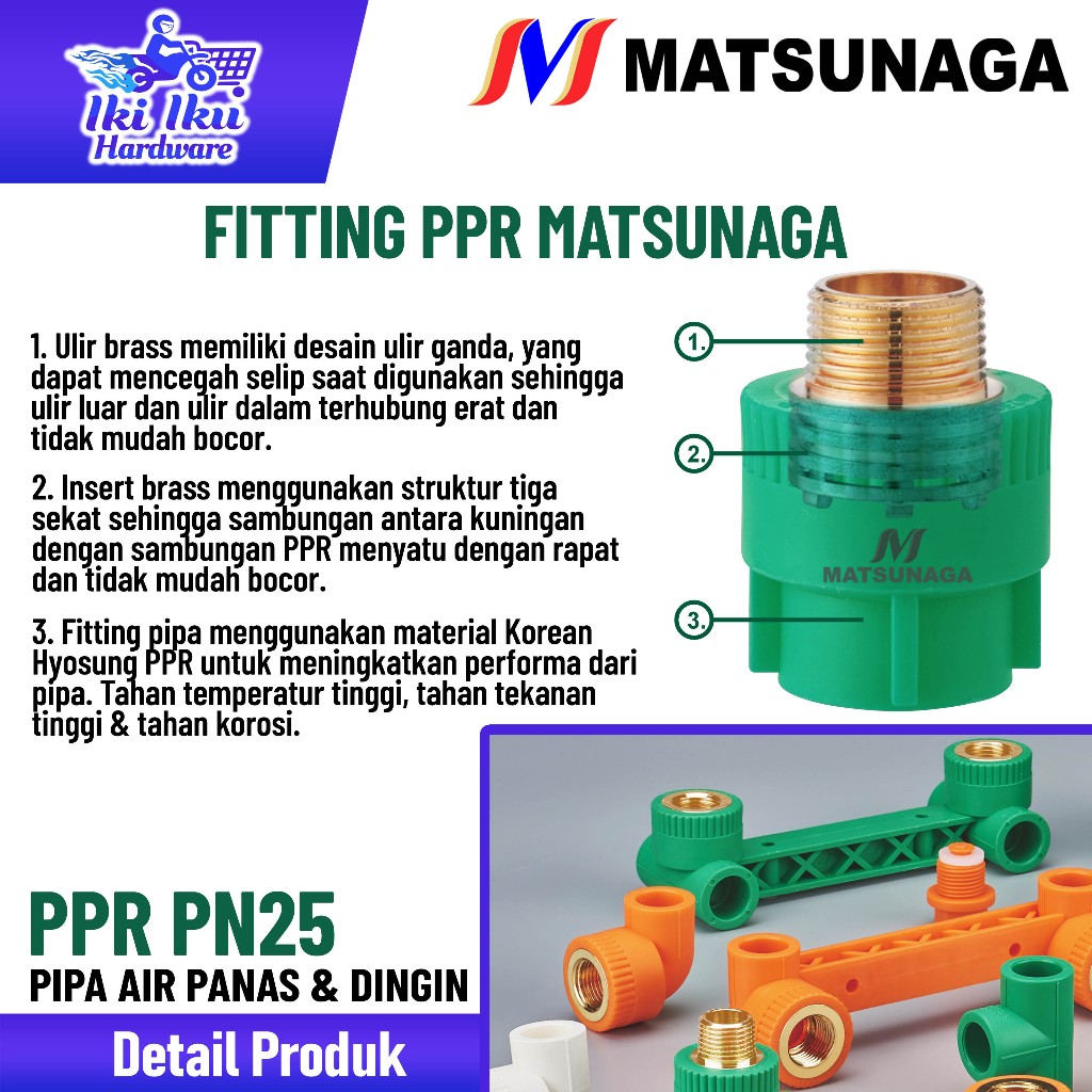 Matsunaga Sambungan Tee PPR - Pipa x Ulir Dalam x Pipa