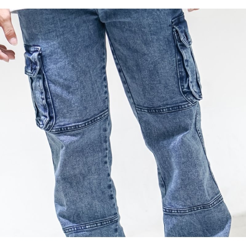 SENSORLINE - JEANS CARGO PANJANG PRIA BLUE WASH - UNISEX STYLE STRETCH