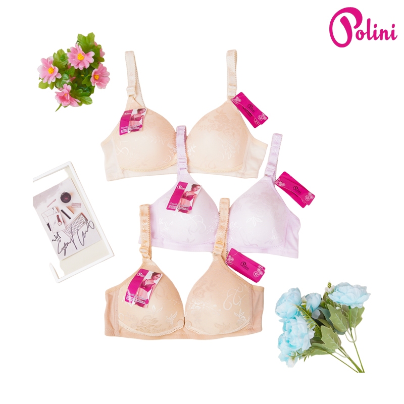 POLINI Bh Menyusui / Nursing Bra Tanpa Kawat Kancing Depan K3 Motif Brokat G664