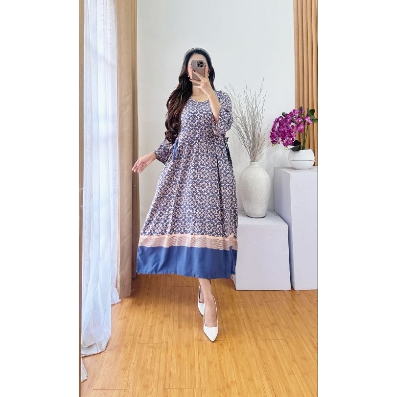 Dress Chibi 3/4 Busui Sleting Tali Samping - Nyaman dan Modis - Hamil, Tebal