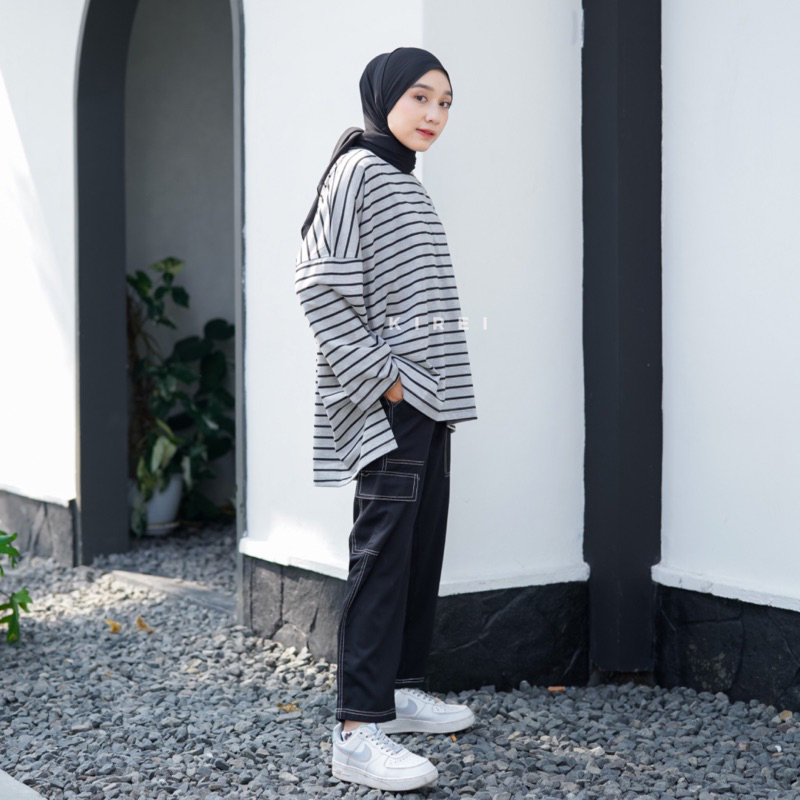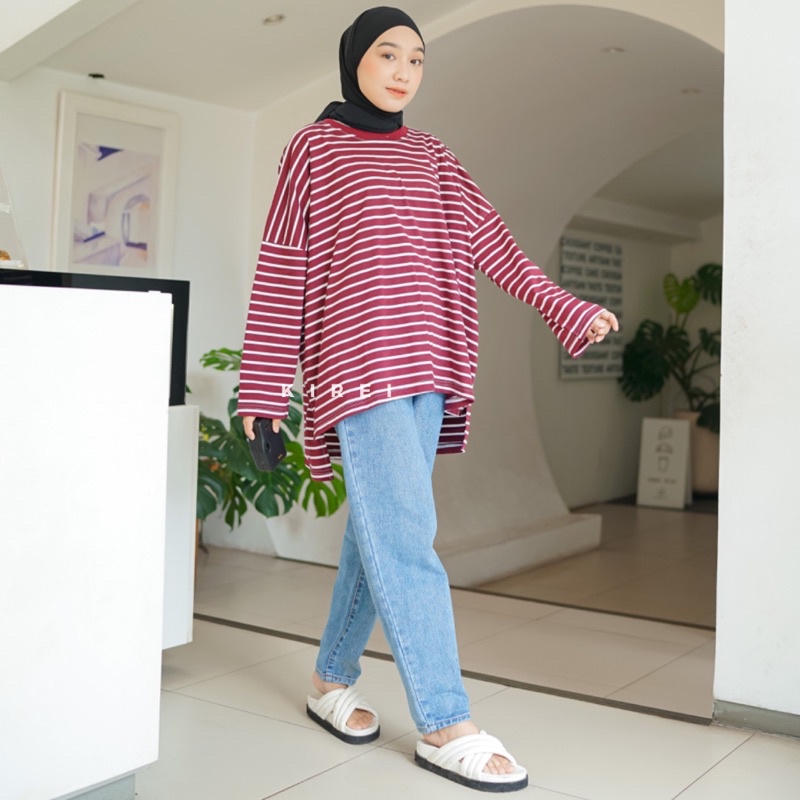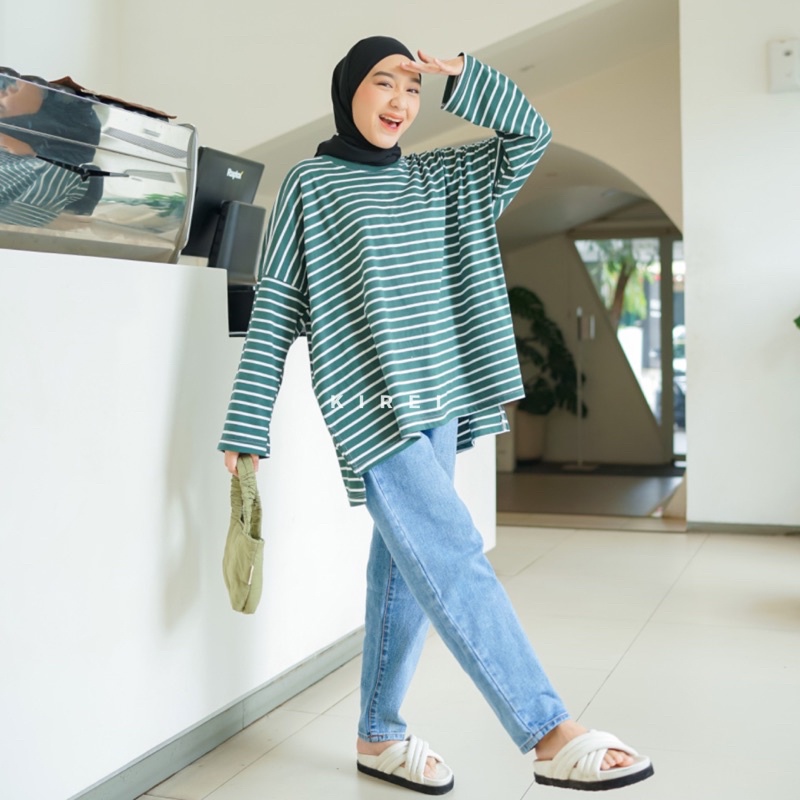 Kirei Outfit - Oversize Stripes Longsleeve Top Lengan Panjang Nonbusui dan Busui