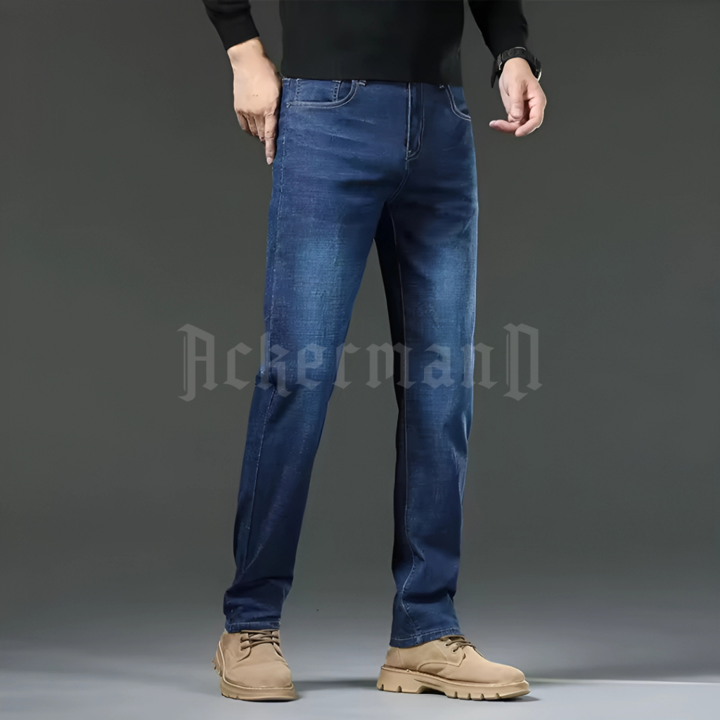 Ackermann - Celana Pria Jeans Retro Panjang Slimfit Dark Navy