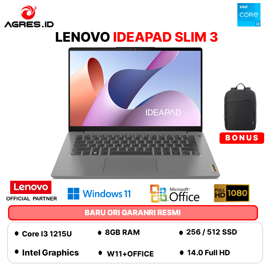 LENOVO IDEAPAD SLIM 3 14 I3 1315 - RAM 8GB 512GB W11+OHS 14.0FHD BLIT -5MID
