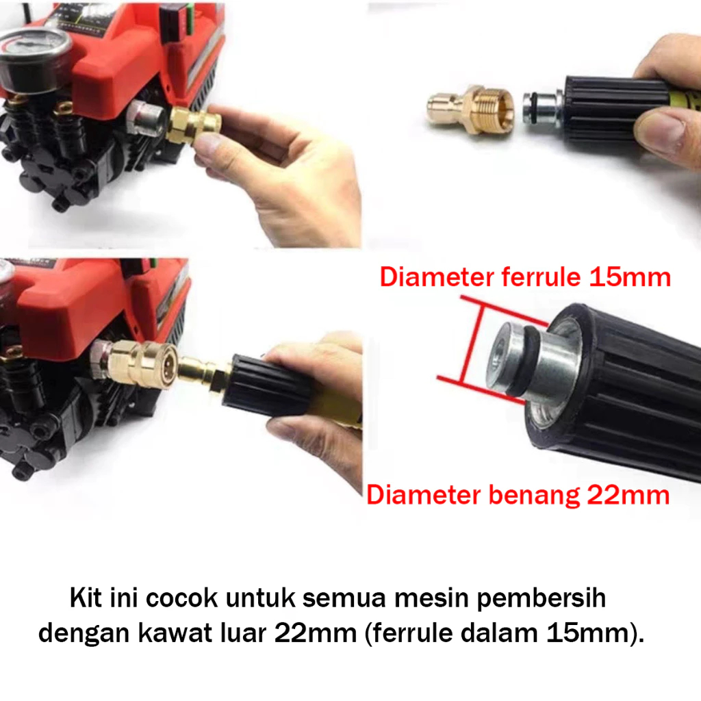 2PCS Konektor M22 Male & M22 Female Untuk Pressure Washer 1/4 female Quick Release Jet Cleaner