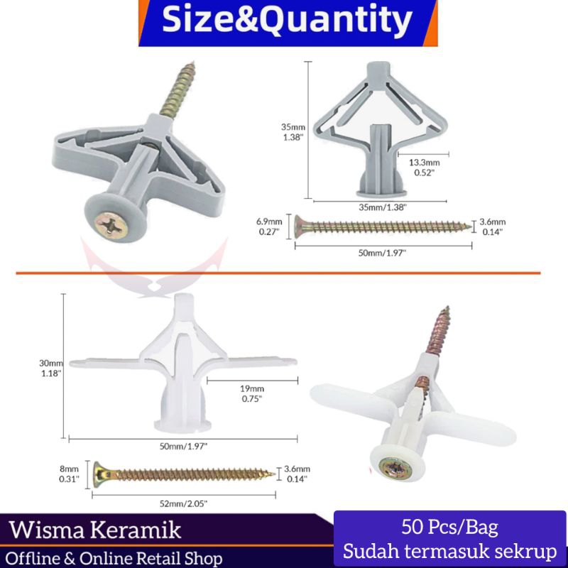 50 set paku gipsum, sekrup gypsum, Pengencang sekrup Gypsum/sekrup gypsum nylon /Expansion Bolt set/sekrup partisi plafon