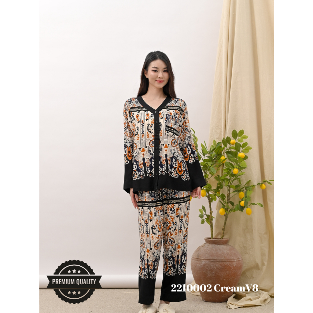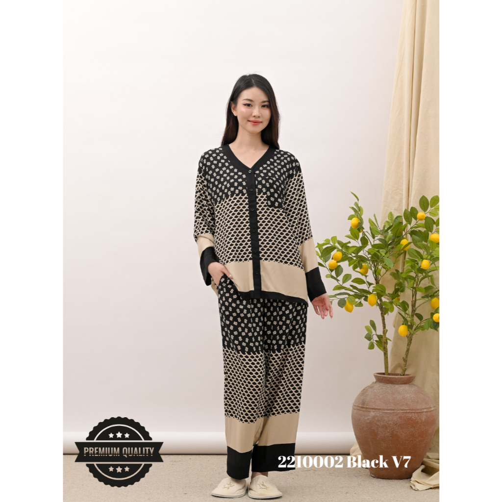 Cammomile 2210002 Black V7 stelan piyama list hitam tangan panjang one set
