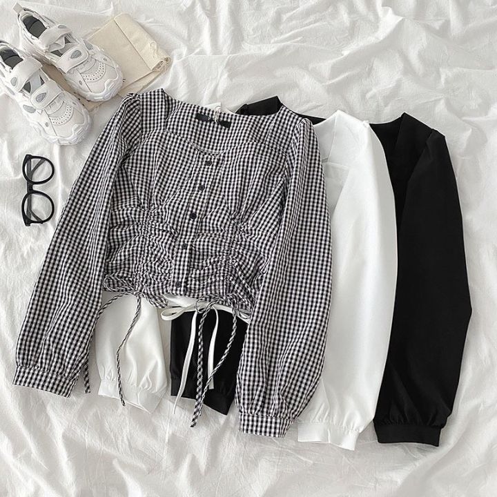 Vallina Outfit - Colyn Top Blouse Drawsting Croped Atasan Korean Remaja Wanita Premium