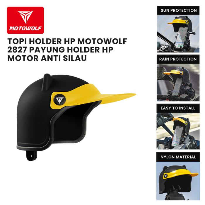 TOPI HOLDER HP MOTOWOLF 2827 PAYUNG HOLDER HP MOTOR ANTI SILAU - BLACK RED