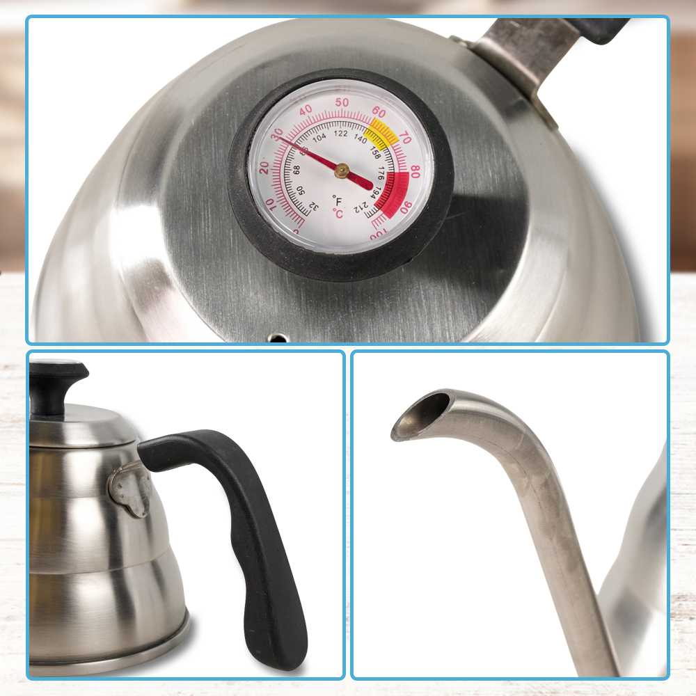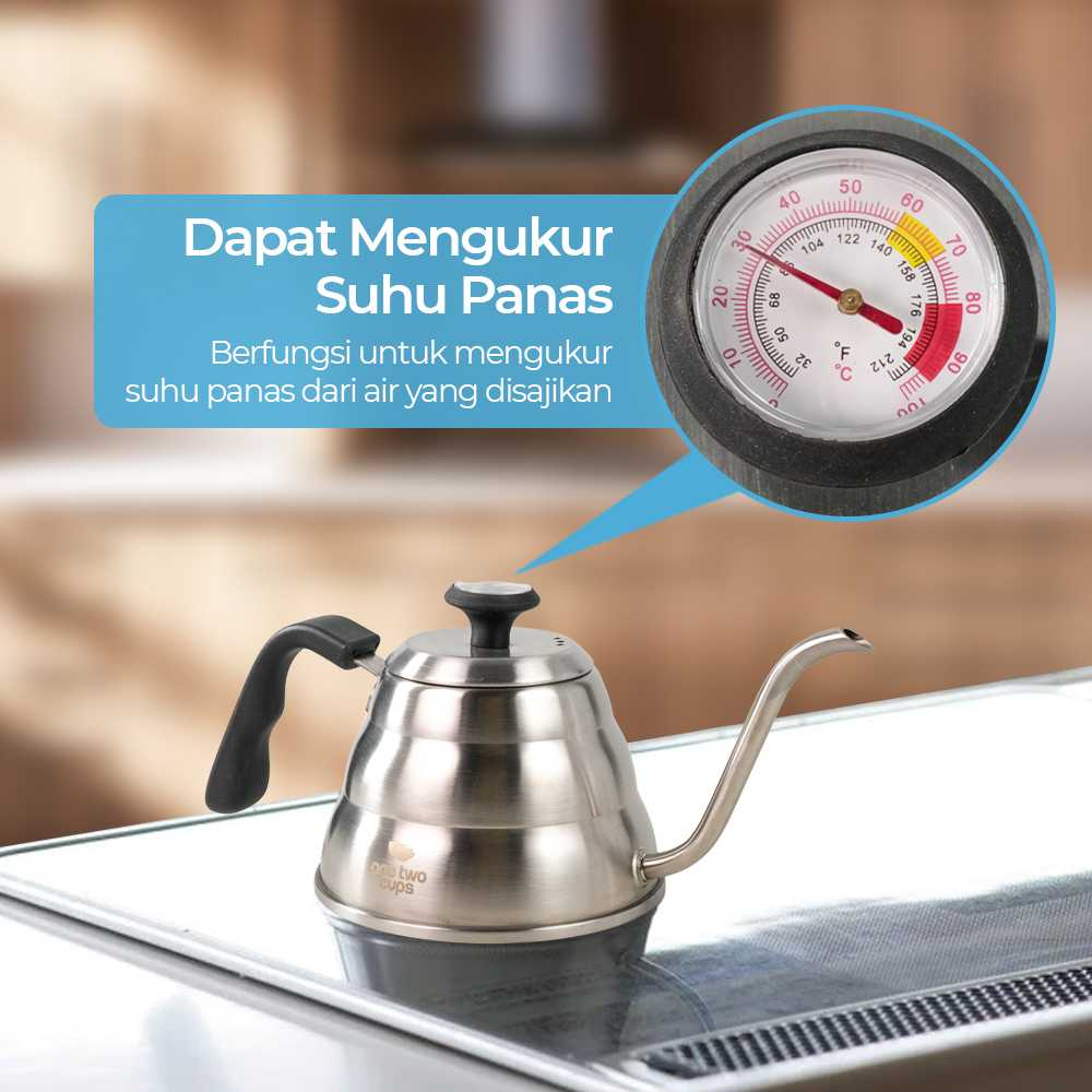One Two Cups Coffee Maker Pot Drip Teko Leher Angsa 960 ML with Thermometer