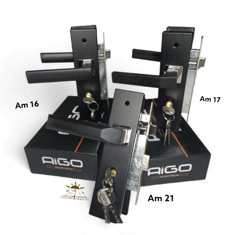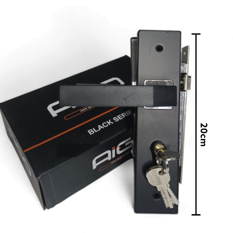 Kunci Pintu Rumah Hitam 20cm AIGO / Handle Pintu Tanggung Selot Pintu 1 Set Komplit