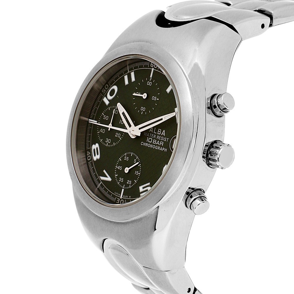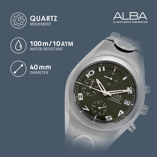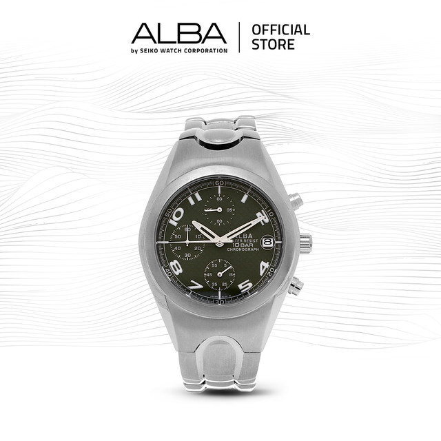 Alba Jam Tangan Pria Chronograph AJN085 / AJN085X1 Quartz Black Dial Stainless Steel Strap Watch