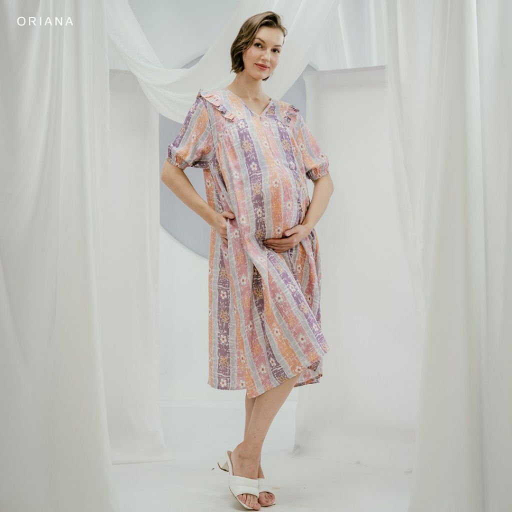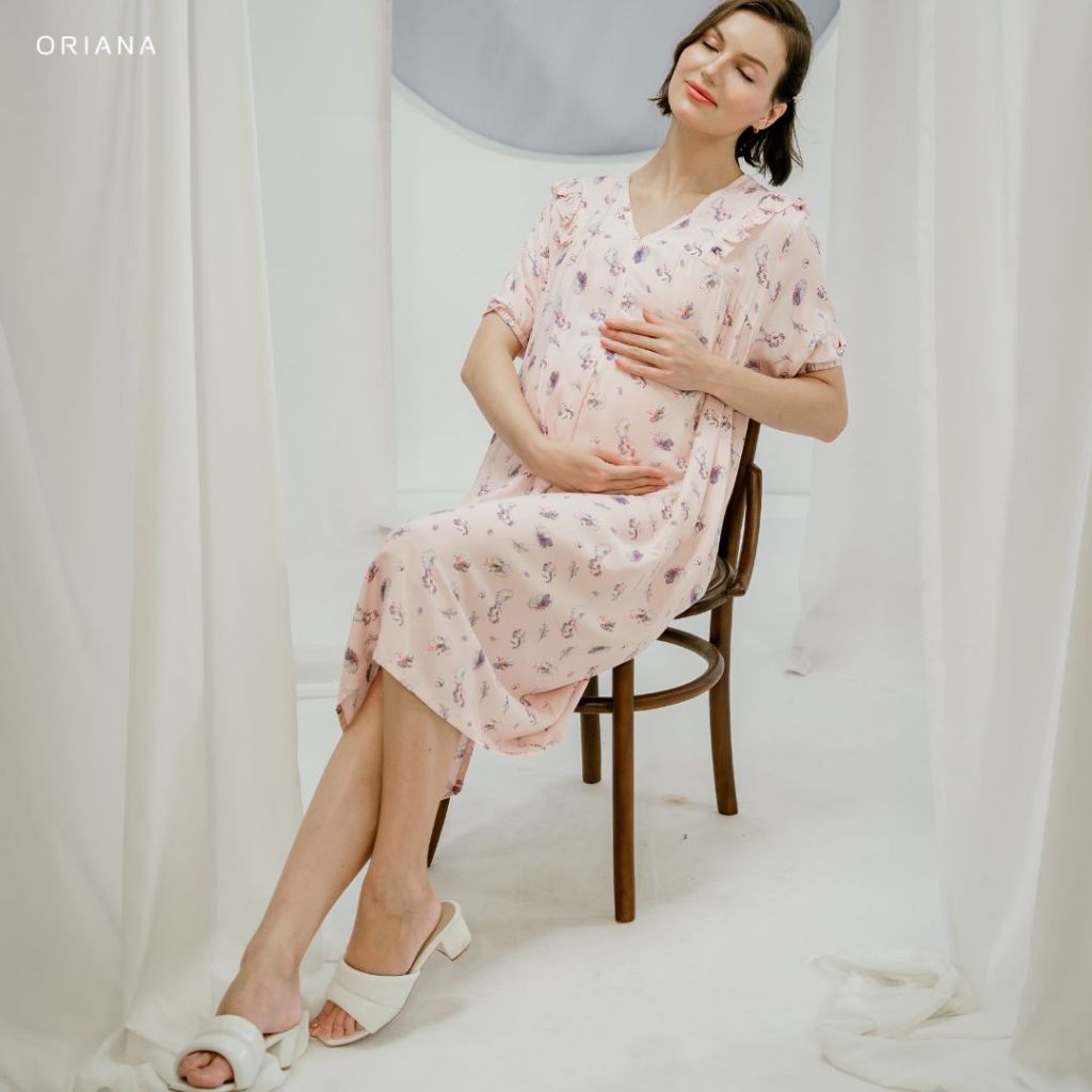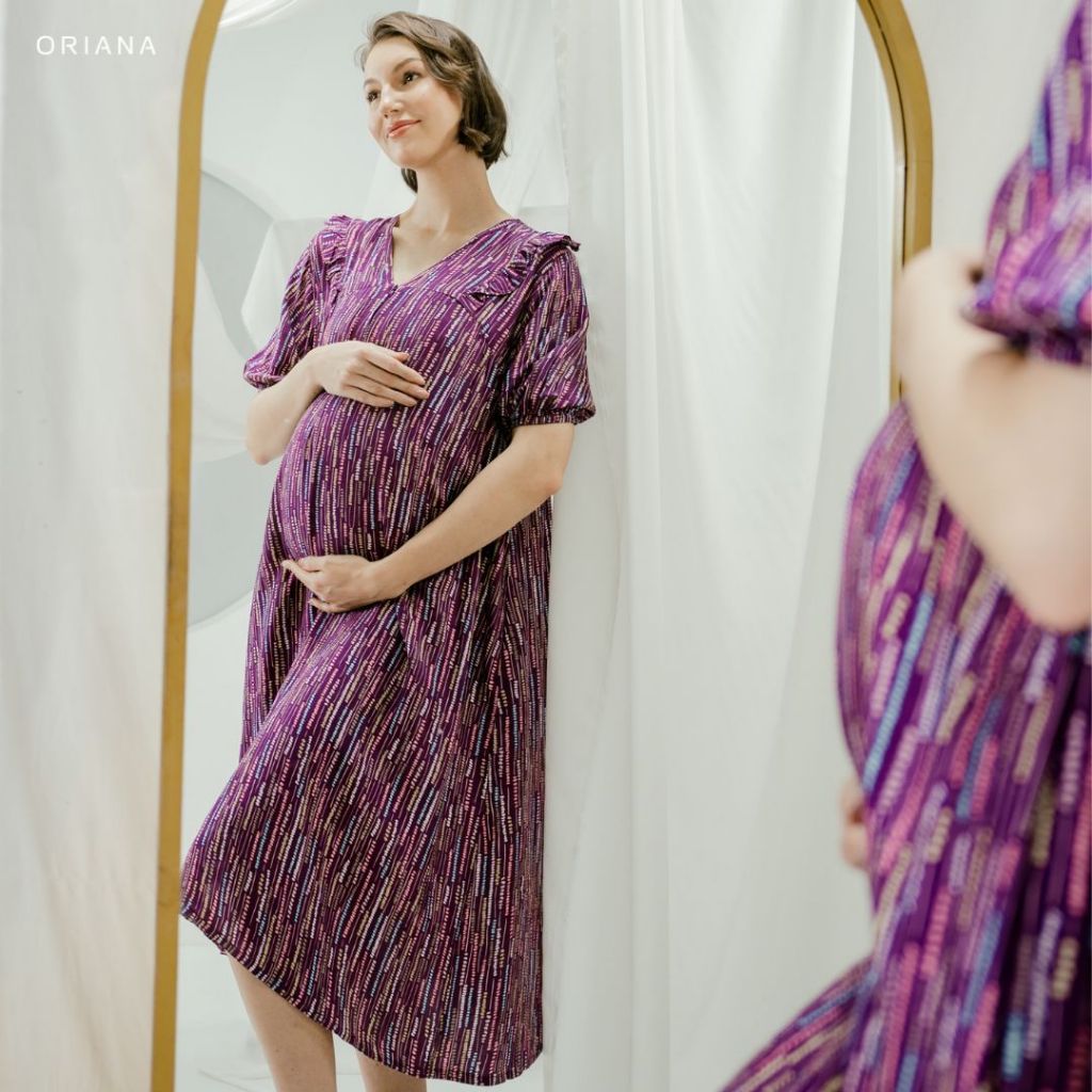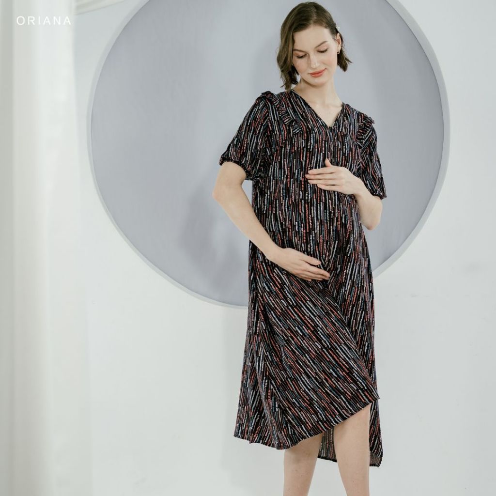 [MATERNITY COLLECTION] Oriana Homewear Midi Dress Mabel Maternity Collection | Daster Ibu Hamil Dingin Modern