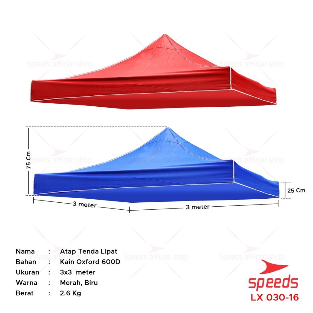 SPEEDS Atap Tenda Lipat Terpal Tenda Bazar Berbahan Kain Oxford 600D Waterproof Indoor Outdoor Ukuran 3x3m 030-16