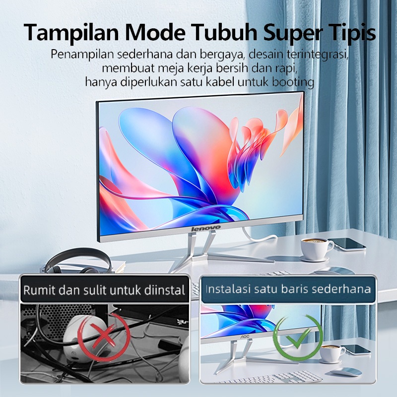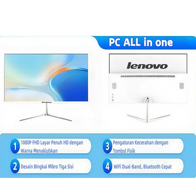 Lenovo Komputer PC All in One Intel Core i3/i5/i7 WiFi/Bluetooth Windows 10/11 Komputer Multifungsi untuk Kantor Sekolah