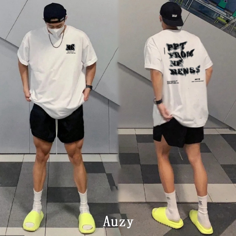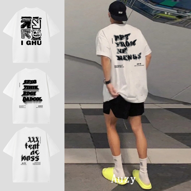Mode Korea T-shirt Atasan Baju Kaos Oversize Pria Putih Lengan Pendek Dewasa