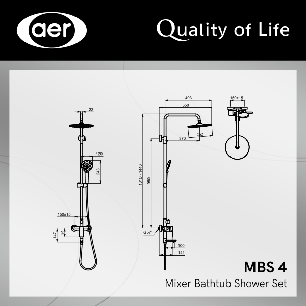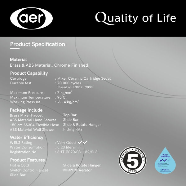 AER Mixer Bathub Shower Set Panas-Dingin, Kran Air, Keran MBS-4