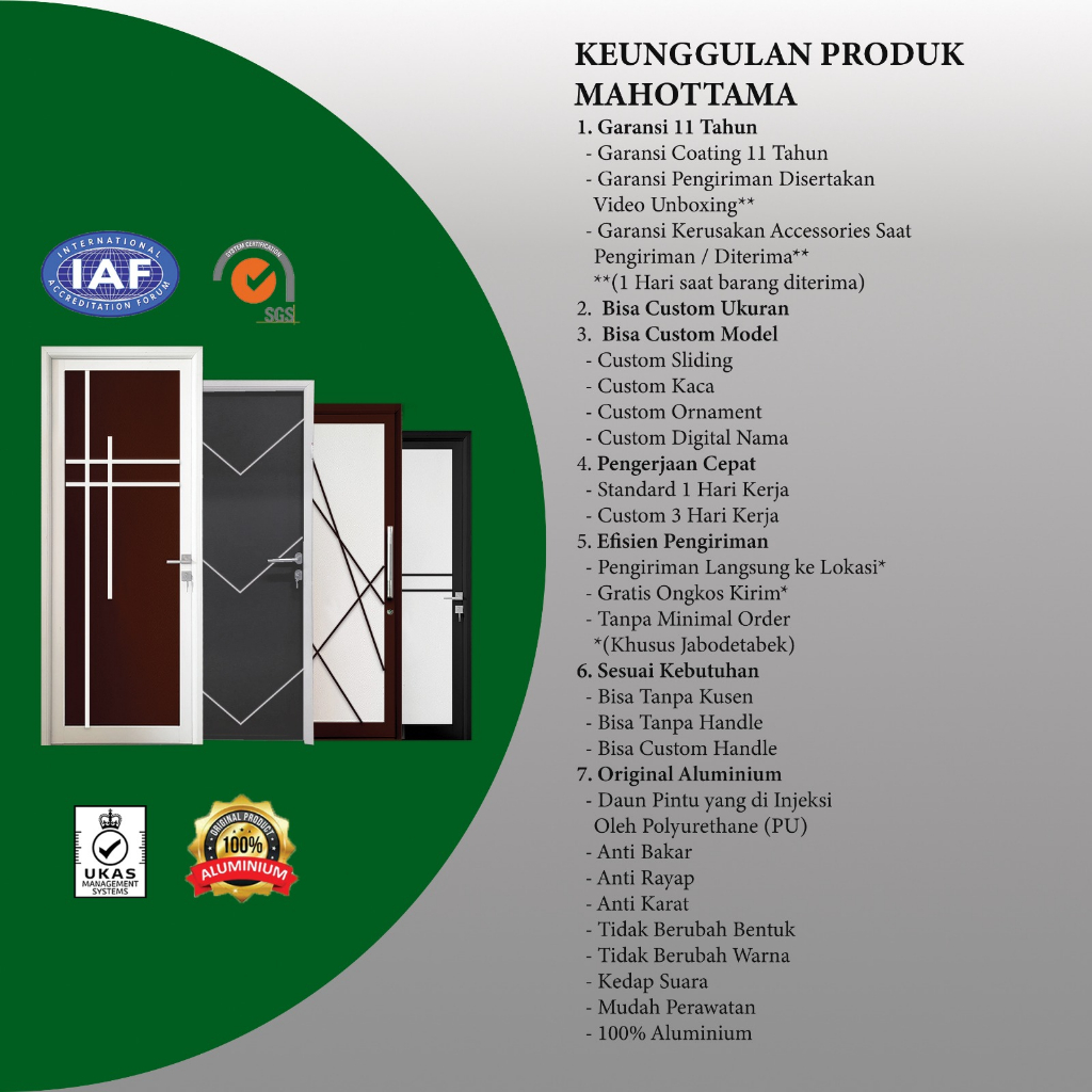 MAHOTTAMA - Pintu Kamar Utama / Kamar Mandi / Gudang Aluminium 80 x 200cm Rumah 1 Set Kusen Kunci Handle Engsel Original