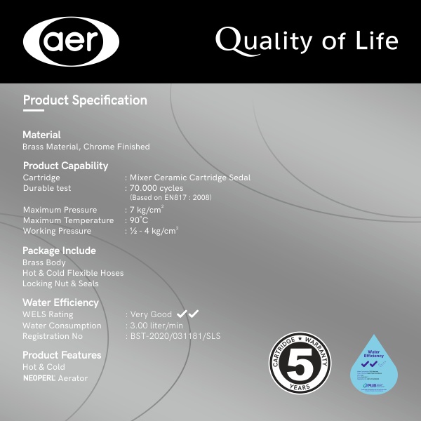 AER Kran Wastafel Panas Dingin - Keran Kuningan / Mixer Faucet SAH H2
