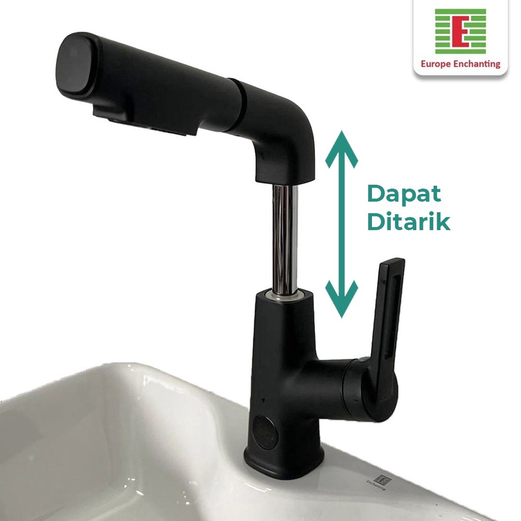 Keran Sink Cuci Piring Fleksibel Hitam Europe Enchanting E1590 LED