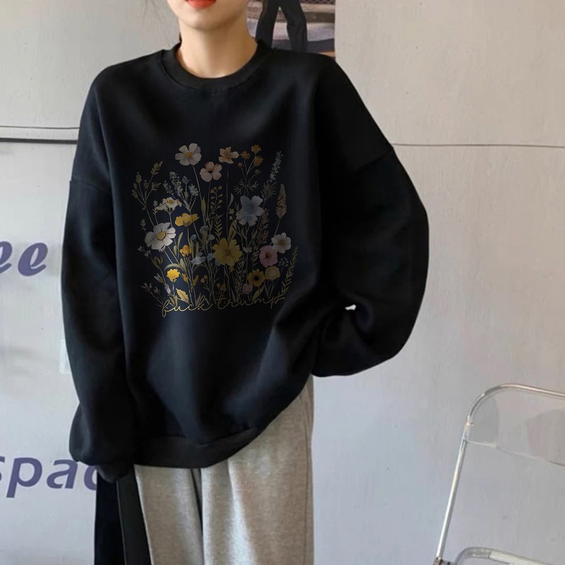 The Monseur Gallery Switer Wanita Oversize Sweater Lengan Panjang Oversized Street Style Korean Style Kaos Cetakan Colorful flowers Korean Style Sweater Oversize | Sweater Cream