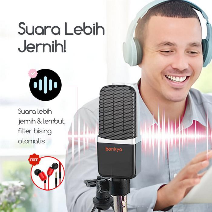 BONKYO MIKROFON M996 TRIPOD STAND 3.5MM DENGAN EFEK GLAMOR & KABEL KONEKTOR UNTUK LIVE STREAMING KARAOKE RUMAH BONUS HEADSET - MIC - WHITE