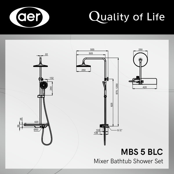 AER Mixer Bathub Shower Set Panas-Dingin, Kran Air, Keran MBS 5 BLC