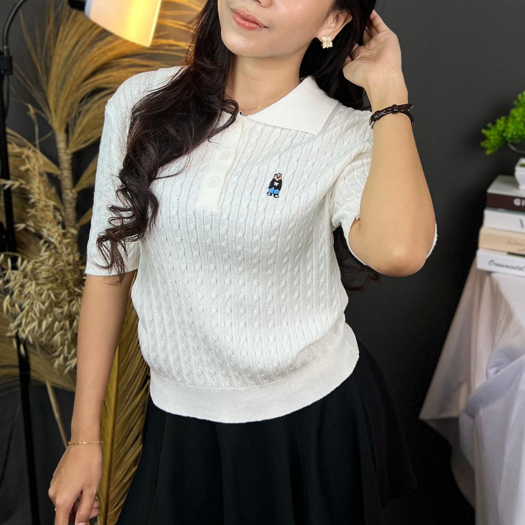 FLIDA FASHION - B207 atasan rajut wanita lengan pendek berkerah Vneck