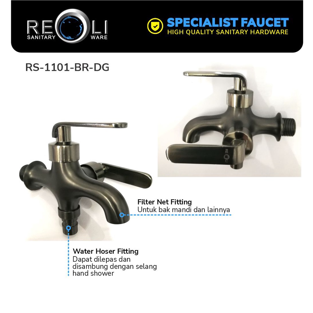 REOLI Keran Air Cabang Shower Mandi Hitam Black Chrome Grey Kuningan 1101