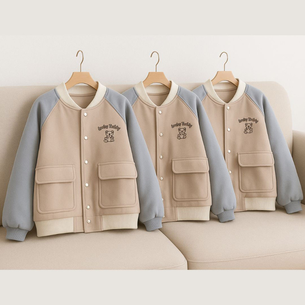 Vallina - Two Tone Bear Baseball Pocket Outerwear Jacket Varsity Remaja Wanita Korean Style Premium