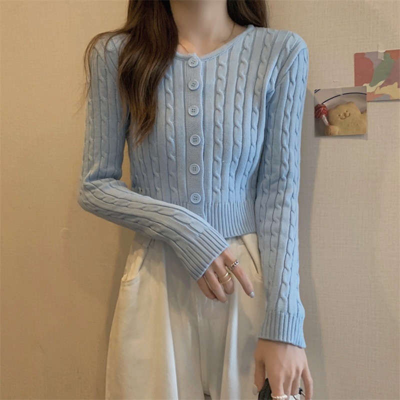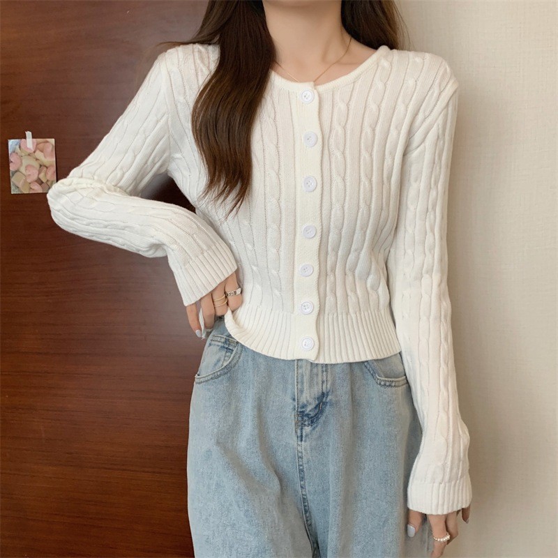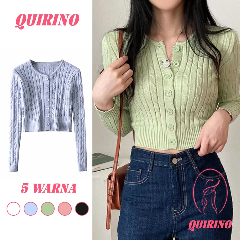 QUIRINO - Cardigan rajutan lengan panjang warna solid desain twist wanita gaya Korea
