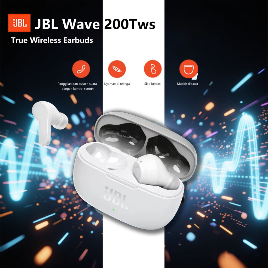 JBL Wave 200 True Wireless Deep Bass Sound Earbuds Water & Dust Resistant In-Ear Headset Bluetooth With Microphone For Android & IOS Earphone Gaming