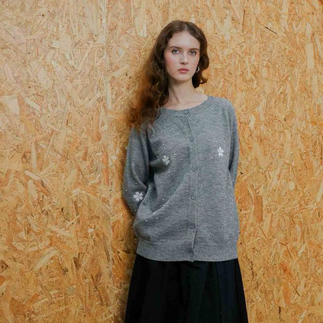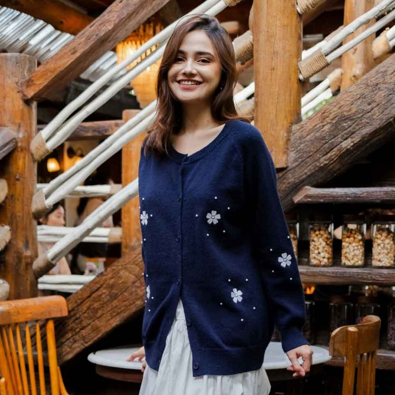 This Is April X Syifa Hadju Vol.II Atasan Rajut/Knit Wanita Terbaru Lengan Panjang Hijab Friendly Rachel Cardigan Grey dan Navy
