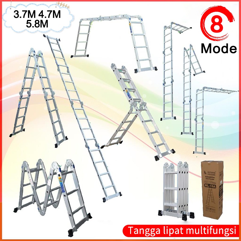 Tangga Teleskopik Multifungsi 4.7M/3.7M/5.8M Meter Paduan Aluminium Tangga Lipat Teleskopik