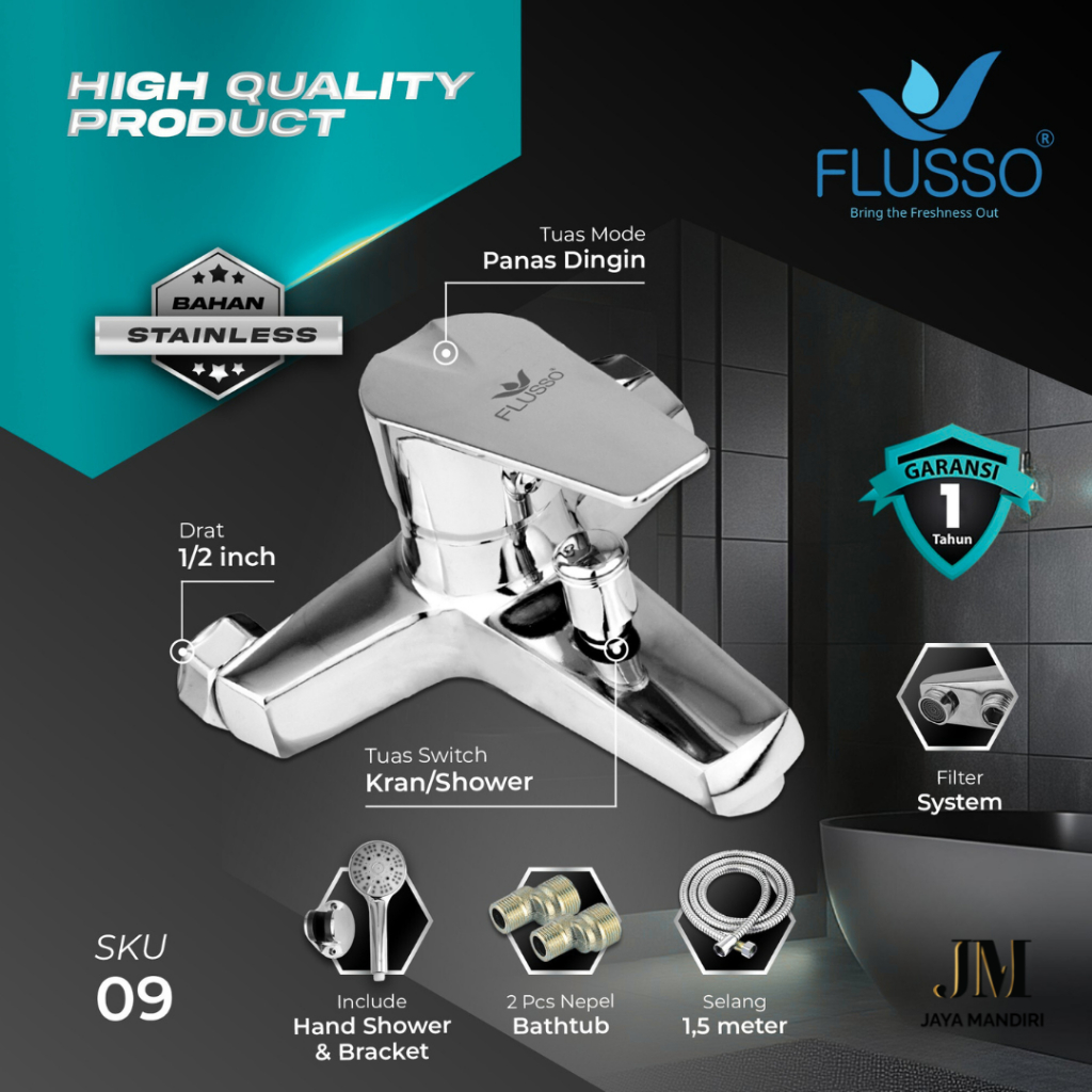 Flusso Kran Bathtub Flusso Set Shower + Selang Mixer Air Panas Dingin | 09