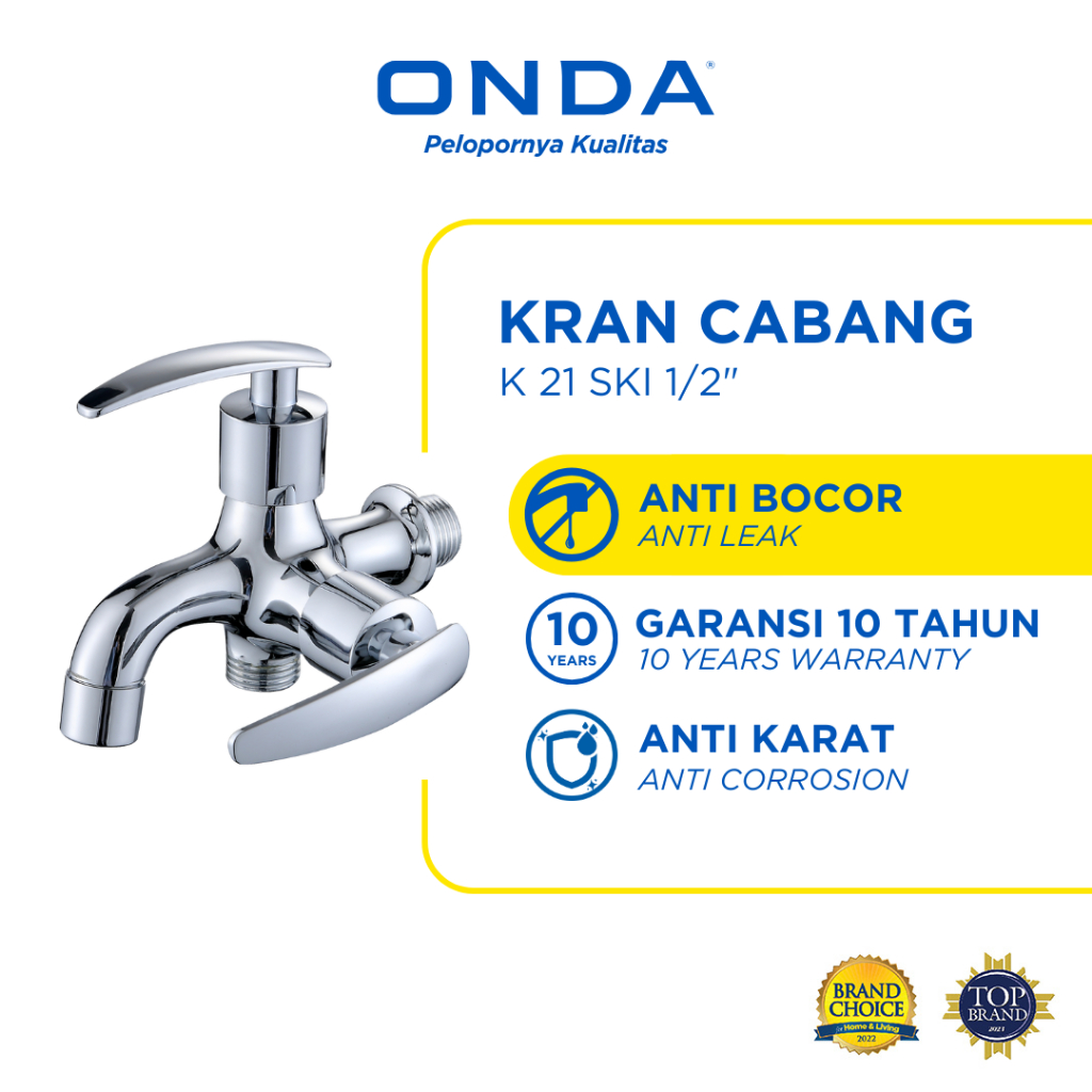 ONDA Kran Cabang 2 K 21 SKI 1/2 In Kran Shower Keran Air Kamar Mandi Kran Kloset Anti Bocor