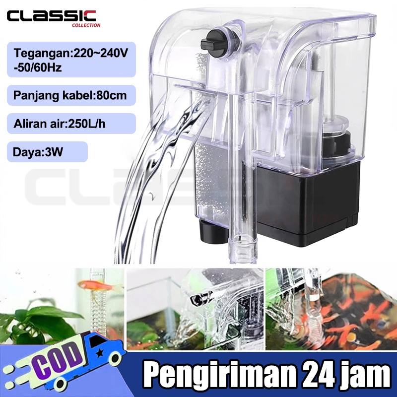 3 In 1 Filter Air Aquarium Gantung 3w 250l/Filter Gantung Akuarium/ Aquascape/ Free Batu /Filter Hang On/Gantung Akuariu