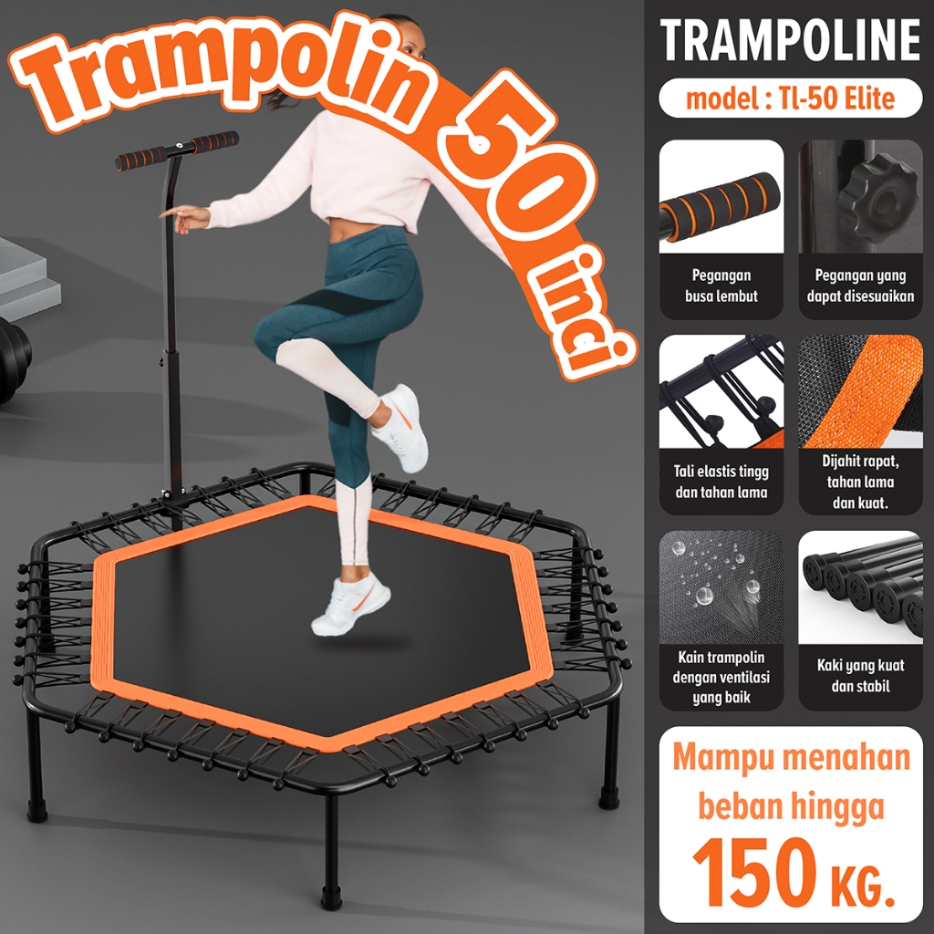 BG SPORT Trampoline Alat Olahraga Lompat 50 Inch Kuat Hingga 150KG Anti Slip Adjustable