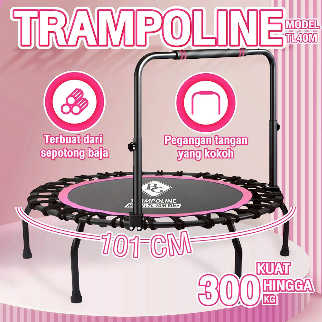 BG SPORT Trampoline Handle 40 Inch Lipat Anti Slip Rangka Baja Kuat Olahraga Lompat Indoor Outdoor