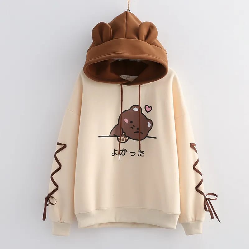 [12.12 Birthday Sale] Femes Cookies Bear Hoodie Outerwear Oblong Crowneck Wanita Remaja Premium