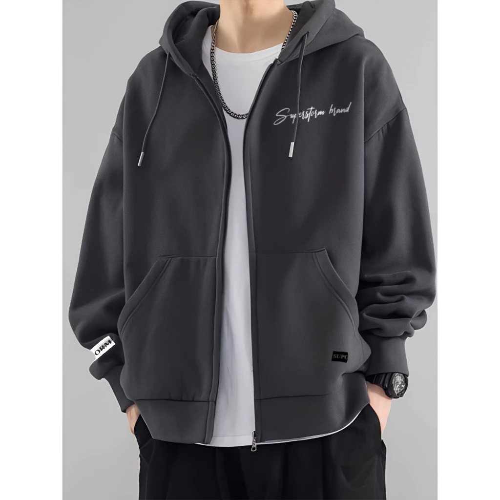 Parisdivarious Jaket Zipper Resleting Superstorm Distro Fleece Premium Pria Wanita Size S - XXL