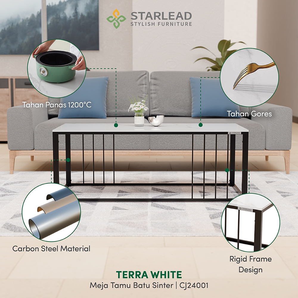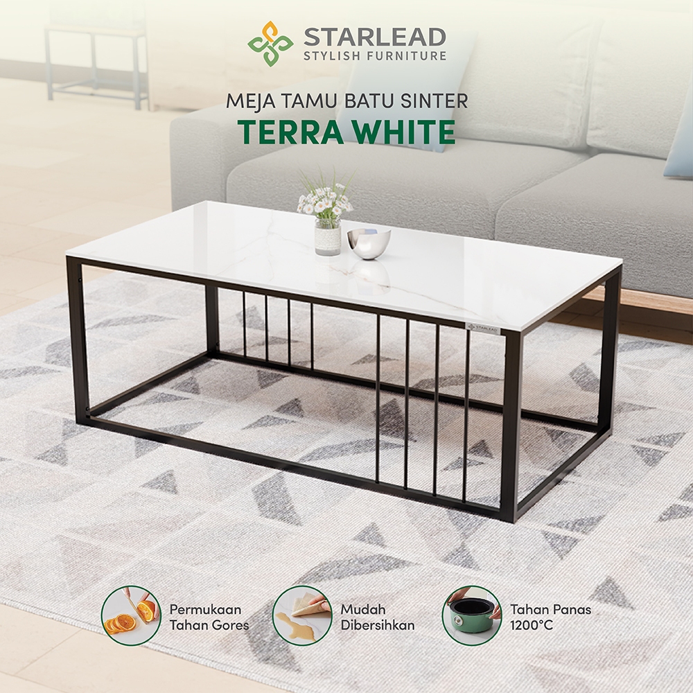 Meja Tamu / Meja Kopi / Coffee Table Sintered Stone Terra White STARLEAD Gratis Ongkir