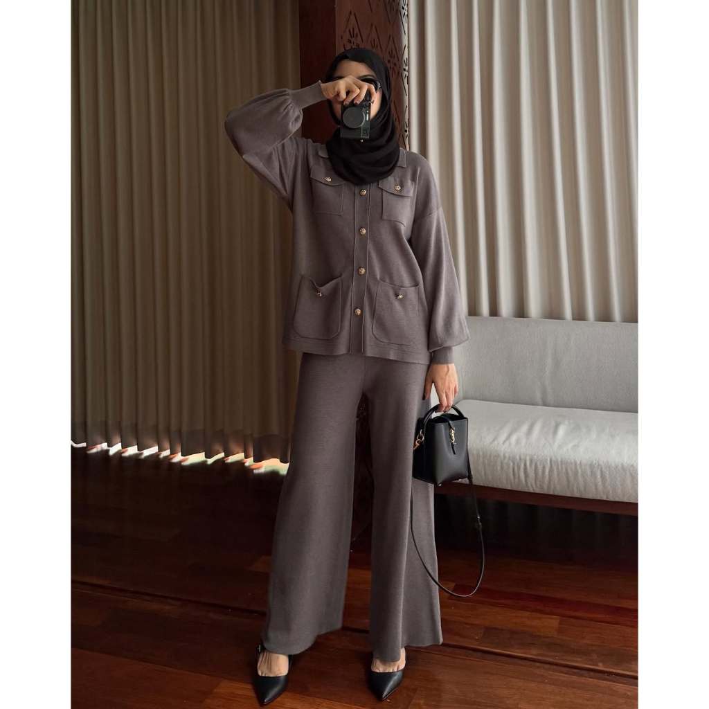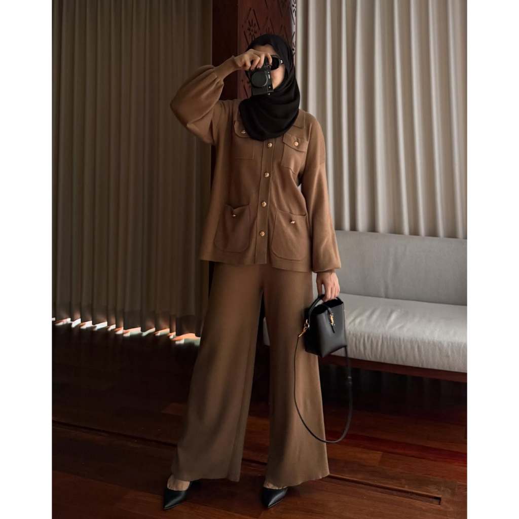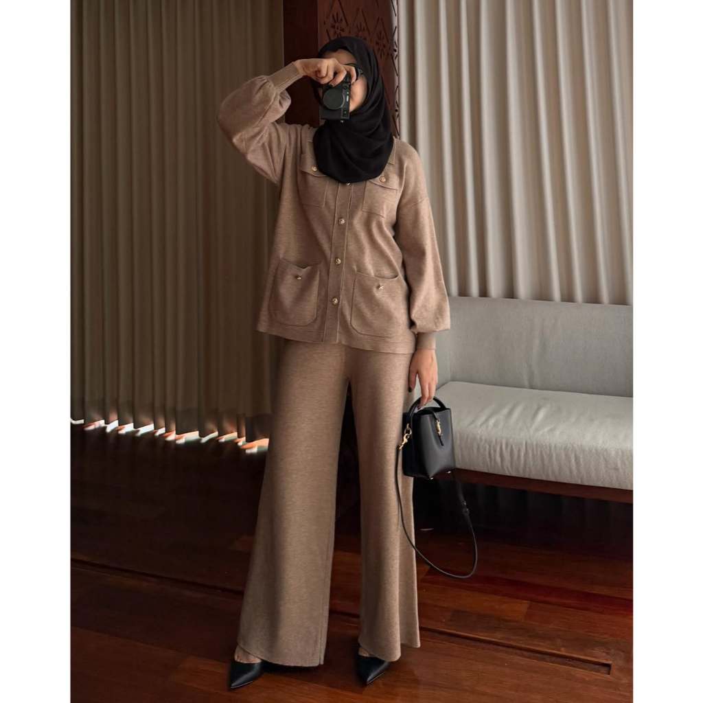 GONEGANI OFFICIAL - Setelan Atasan Bawahan Wanita Bahan Knit Aluna Set
