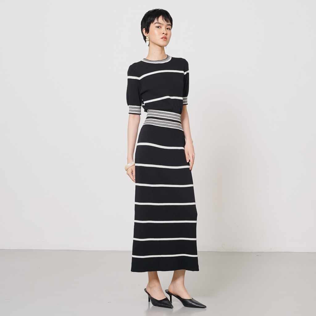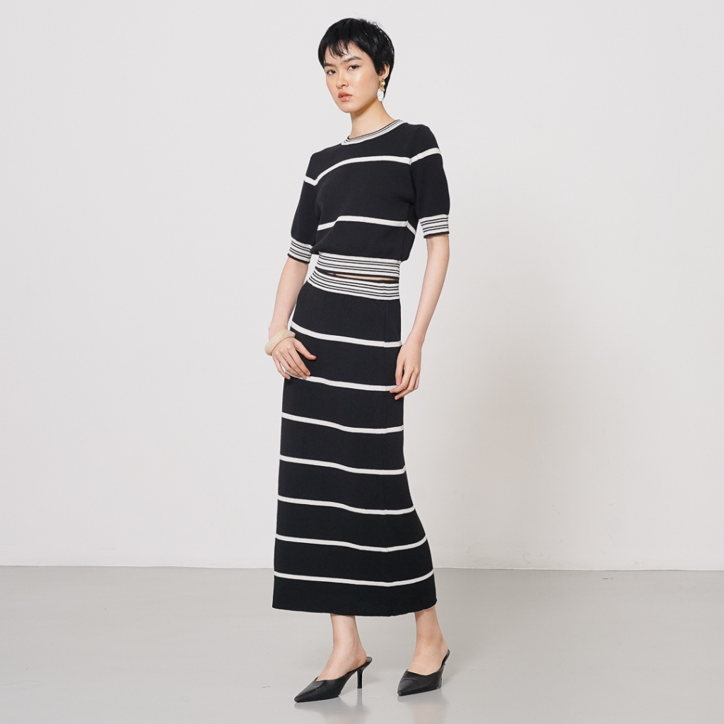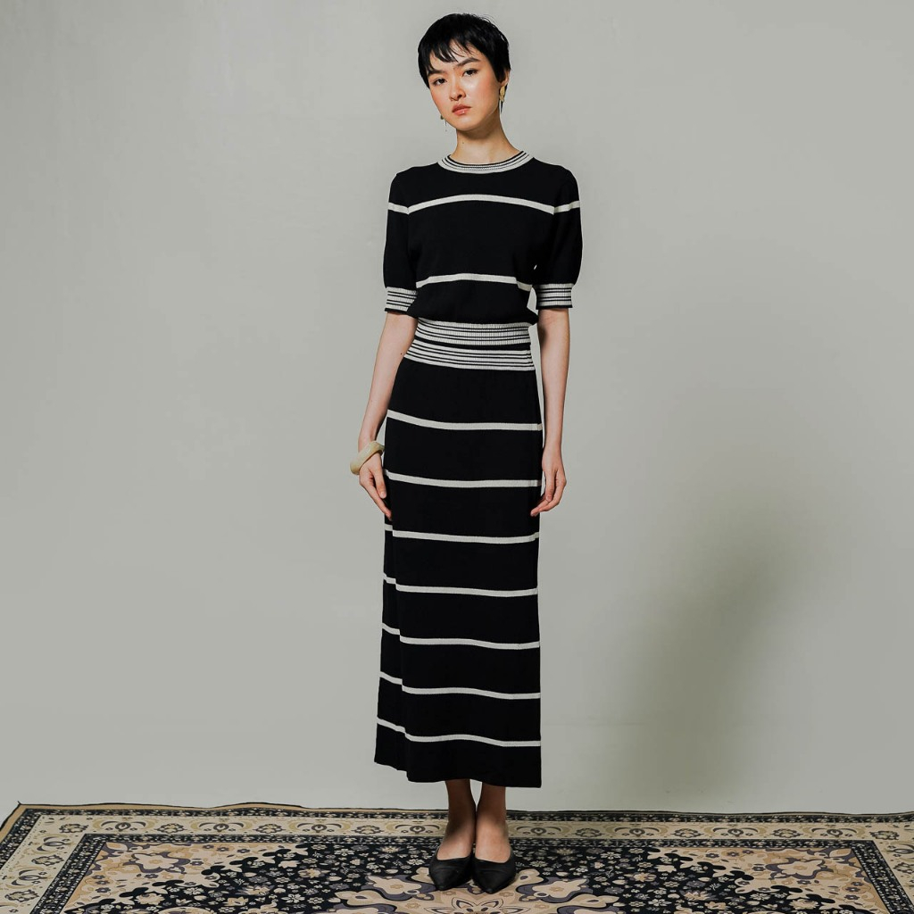 This Is April One Set Wanita Kekinian Rajut Wanita Lengan Pendek Casual Esmeralda Knit Set Black 70028900 (RESTOCK)