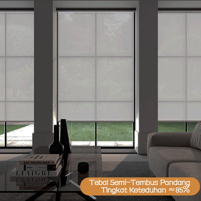 Roller Blind Semi Blackout 85 PERSEN Tahan Air Ringan & Bernapas Gorden Jendela Mudah Dipasang Tirai Gulung Custom Ukuran