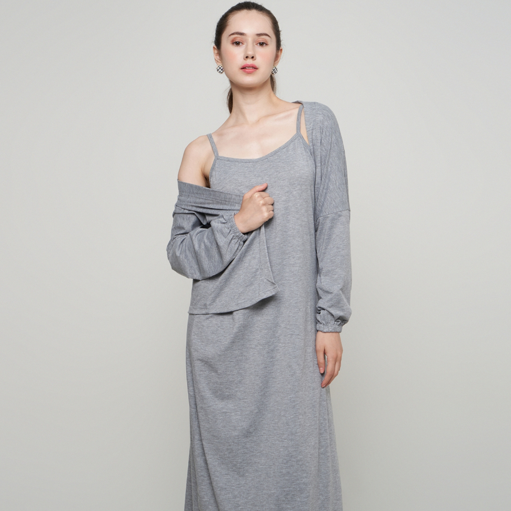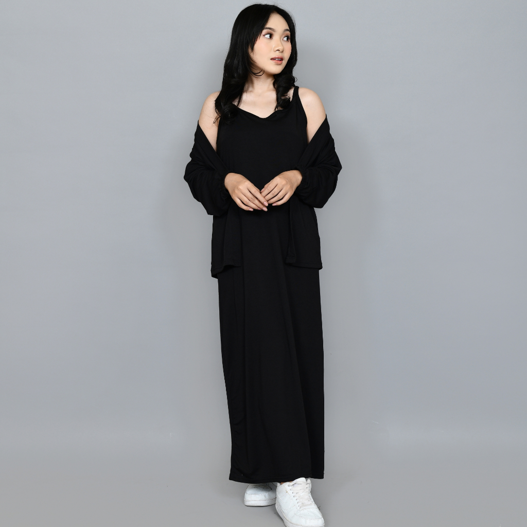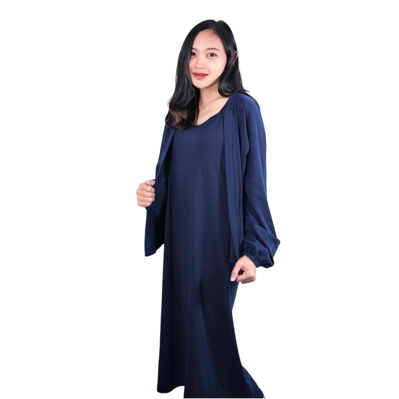 Monellina MELVYA One Set Dress + Cardigan Outer Panjang Casual Wanita