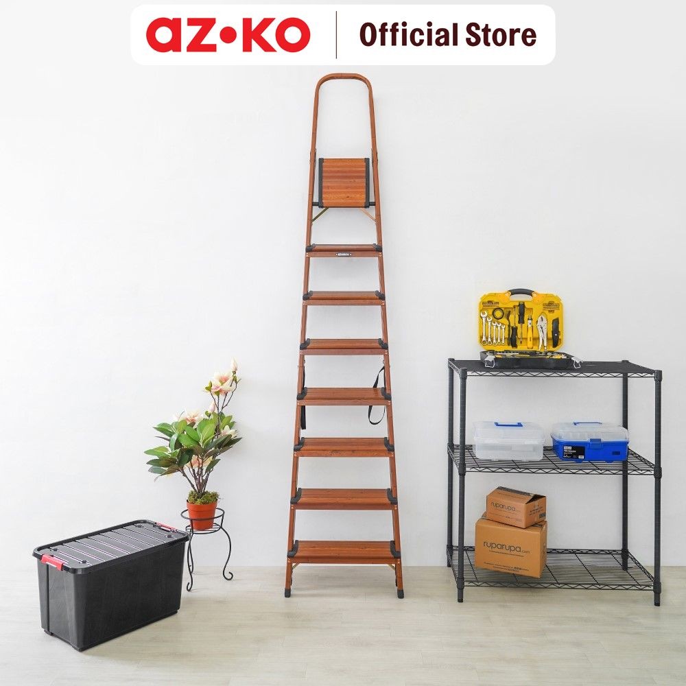 AZKO Fixsteps Tangga Lipat Aluminium 8 Wide Steps Motif Kayu Multifunction Household Ladder Perlengkapan Rumah Tangga Bu