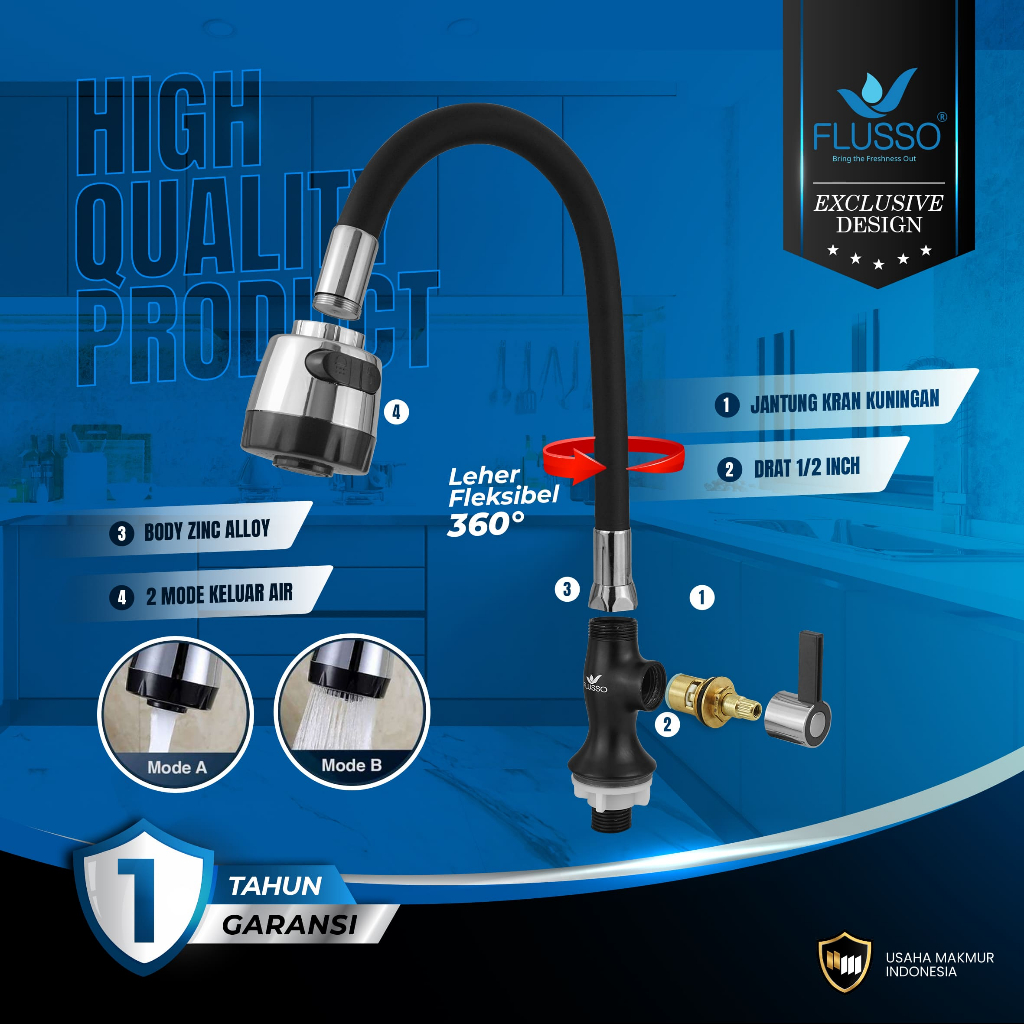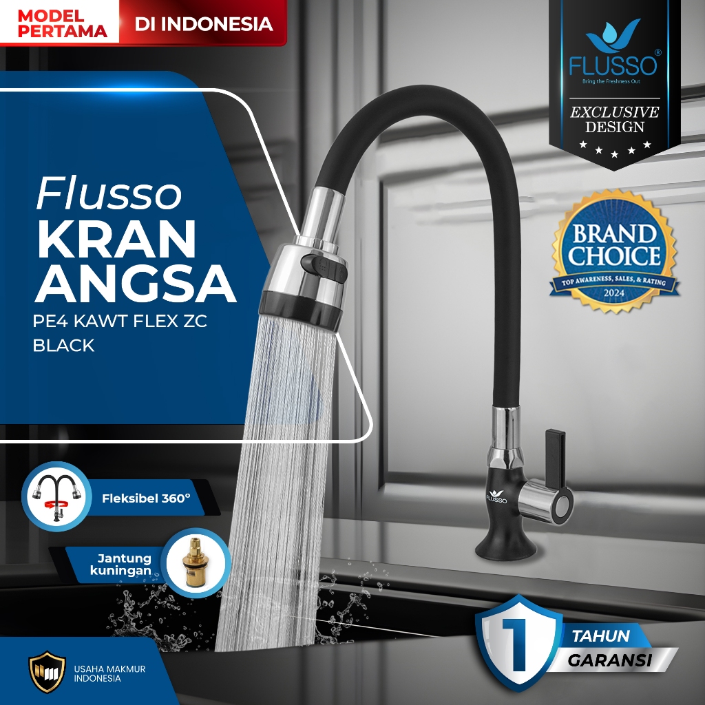 FLUSSO Kran Wastafel | Kran Air | Kran Angsa Cuci Piring 1/2 Inch Wastafel Black TERBARU 860